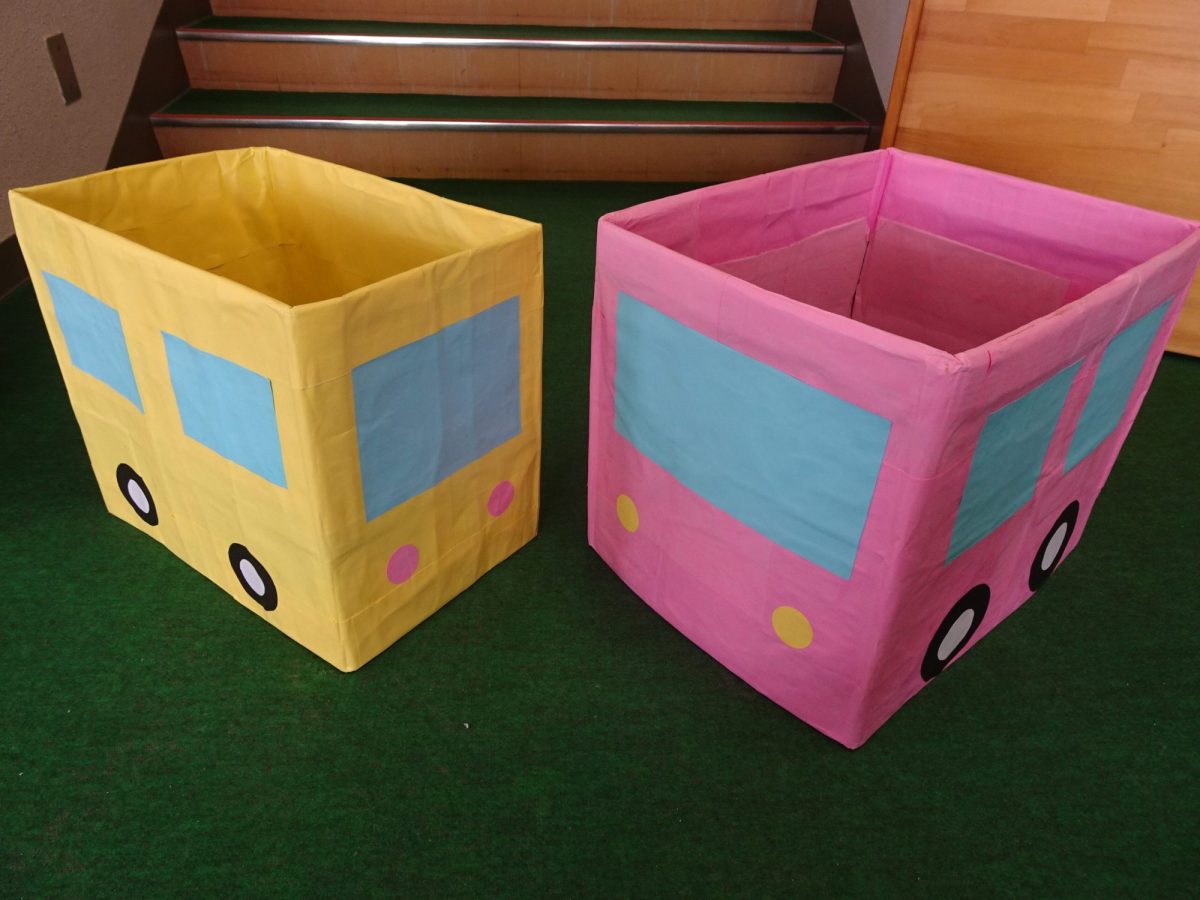 遊戯室に落ち葉やどんぐりを広げて、お絵かきやシールを貼って作ったオリジナルバックに、気に入ったどんぐりを黙々とバックに入れたり、保育者と一緒に落ち葉シャワーを楽しんだりしました。手作りバスは、♪バスごっこの歌を口ずさみながら、動き回って遊びました。昼食は、レジャーシートをひいて、お家の方に作っていただいたお弁当を食べ、特別な楽しい一日となりました。