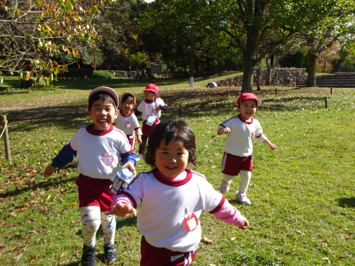 11月6日(木)、ばらぐみ2歳児とももぐみ3歳児が秋の遠足で、バスに乗って三木山森林公園に出掛けました。