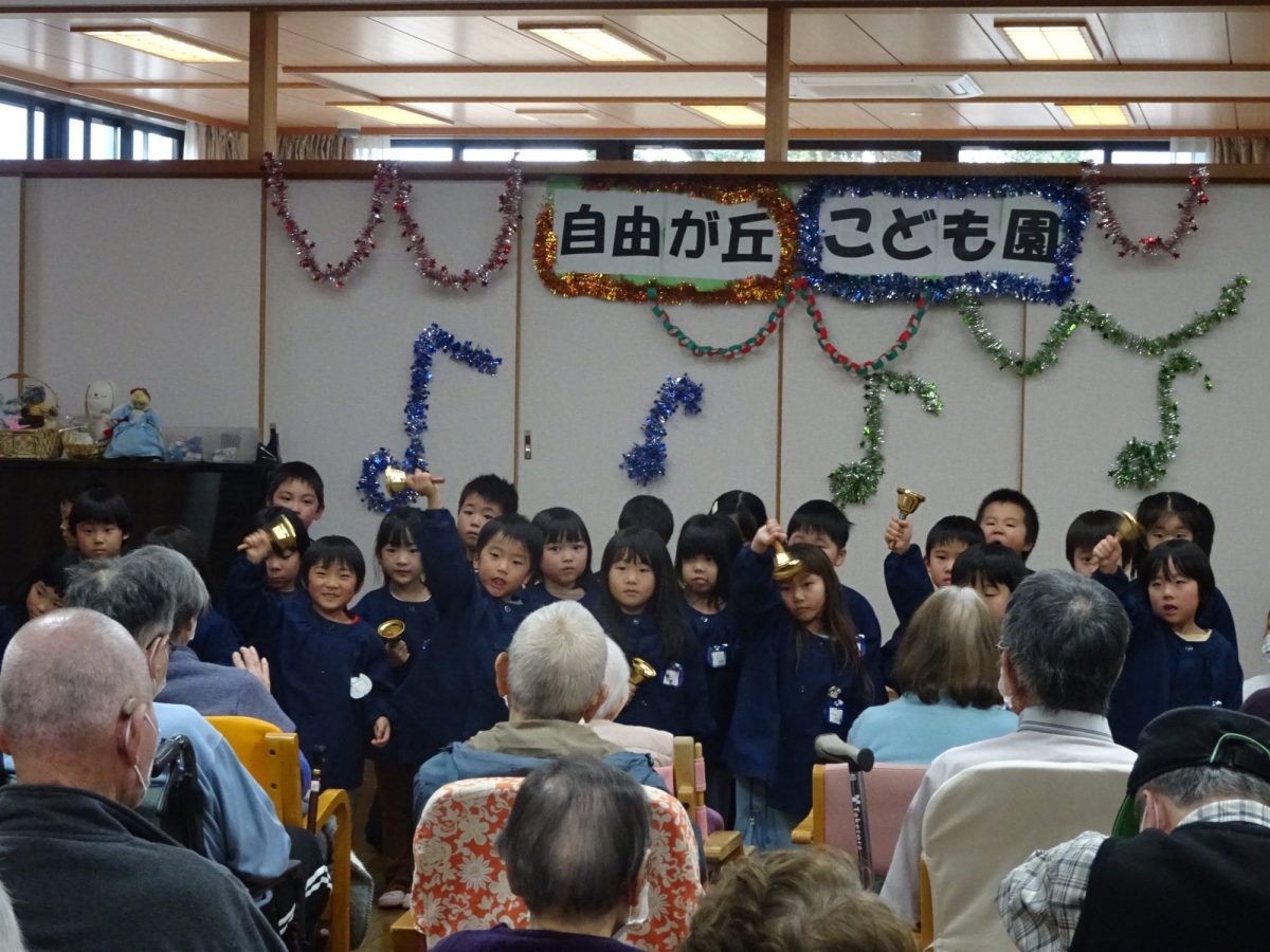 12月15日(月)、デイサービスセンター自由が丘さんのクリスマス会に、年長児すみれぐみが参加させていただきました。利用者の皆さんや職員の方々に拍手で出迎えていただきました。