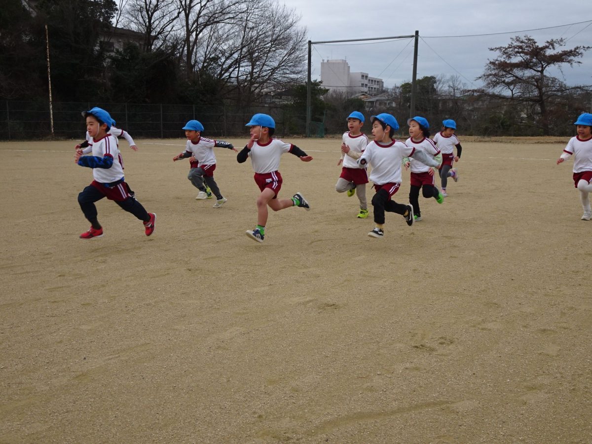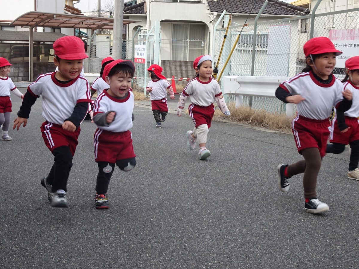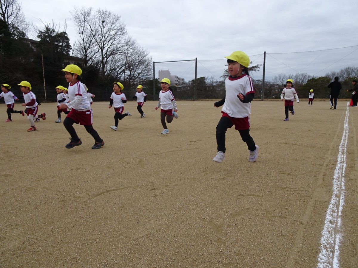 1月15日(木)0,1,2歳児、1月26日(月)3,4,5歳児のマラソン大会を行いました。乳児クラスは園庭付近を使い、年少~年長クラスは自由が丘北公園を使って、元気いっぱい走りきりました。