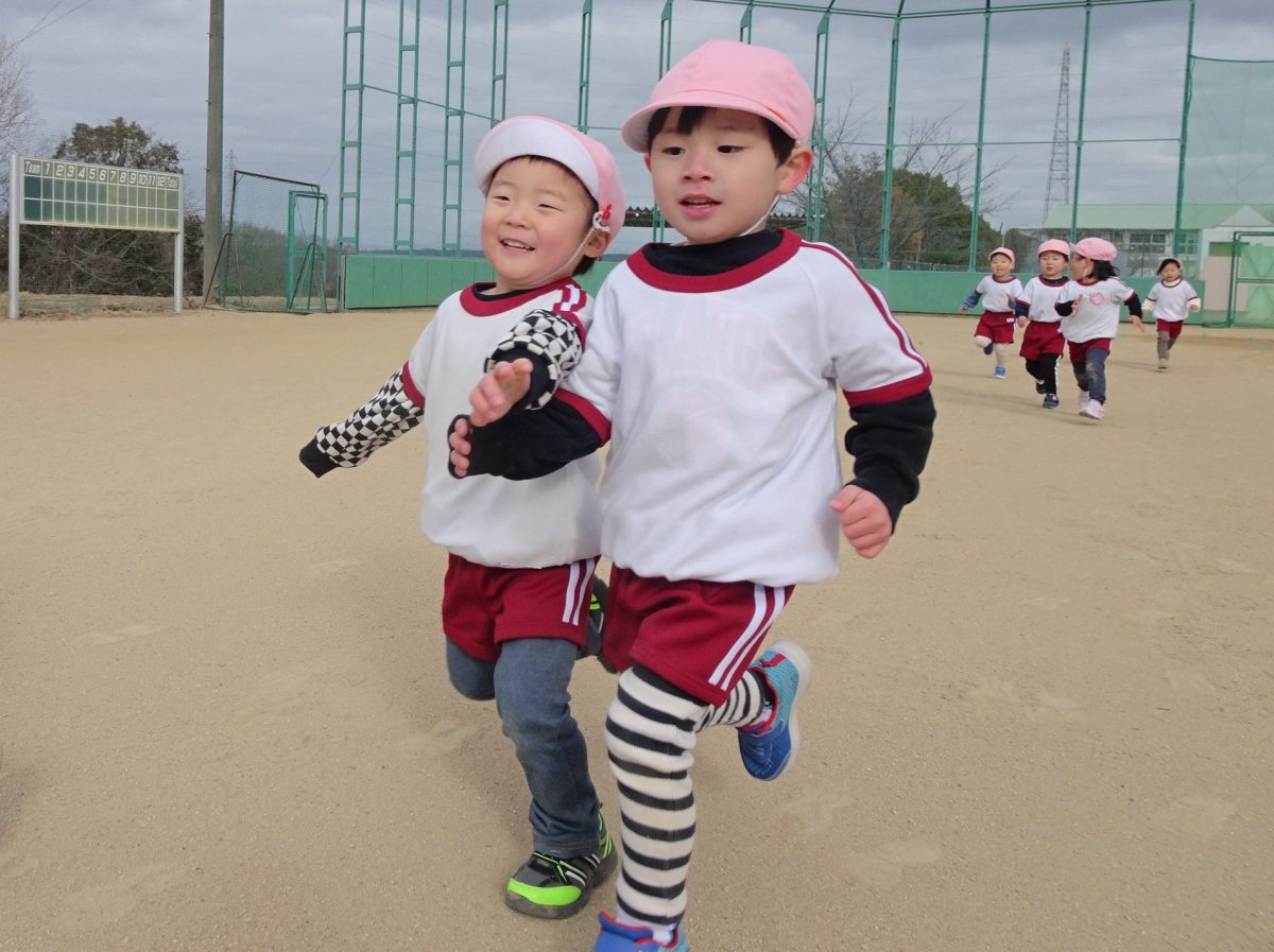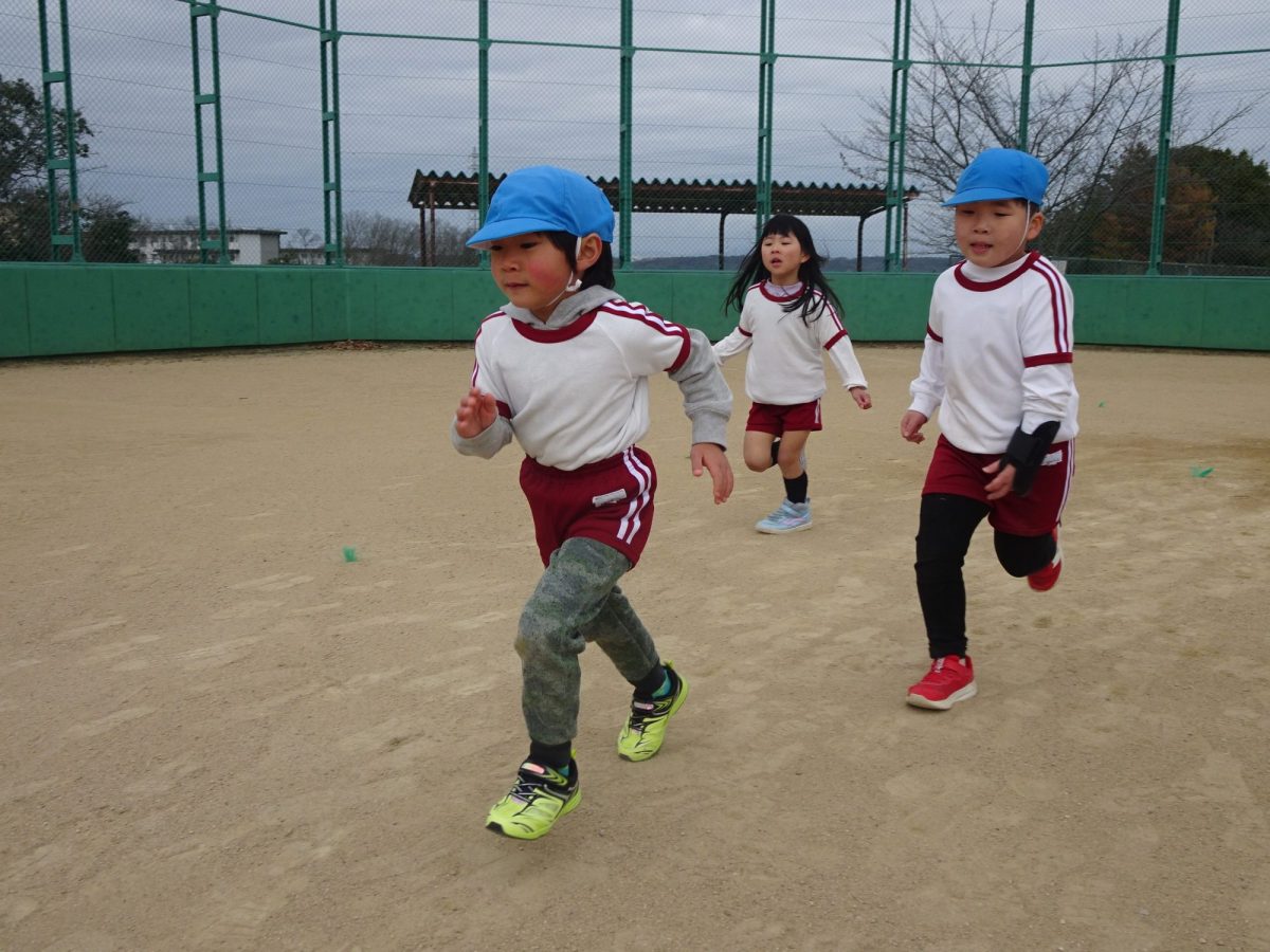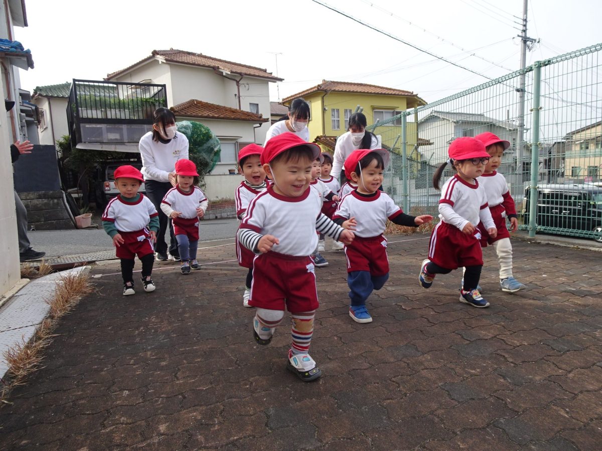 1月15日(木)0,1,2歳児、1月26日(月)3,4,5歳児のマラソン大会を行いました。乳児クラスは園庭付近を使い、年少~年長クラスは自由が丘北公園を使って、元気いっぱい走りきりました。